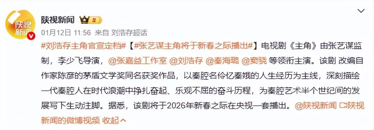就在这种口碑两极分化的节骨眼上,张艺谋监制集年代大剧《主角》突然官宣定新春,不仅要登陆央视一套黄金档,还会在腾讯视频同步播出。