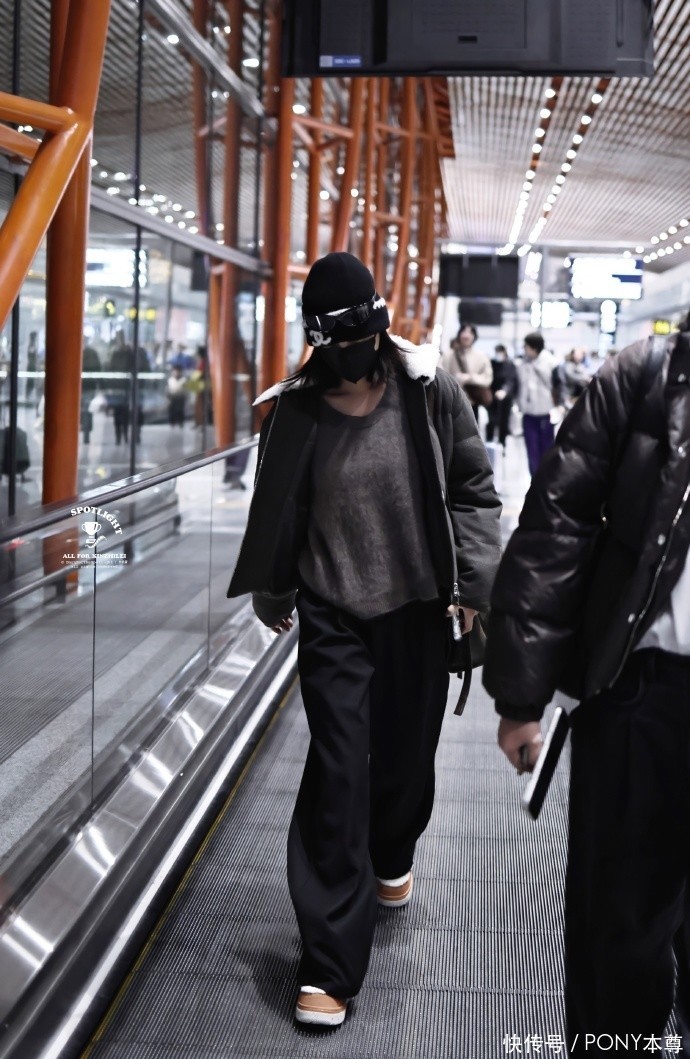 比如最近在机场,一套黑白配色的穿搭,美观又大方,低调又显质感,完全是时尚女性的穿搭榜样。