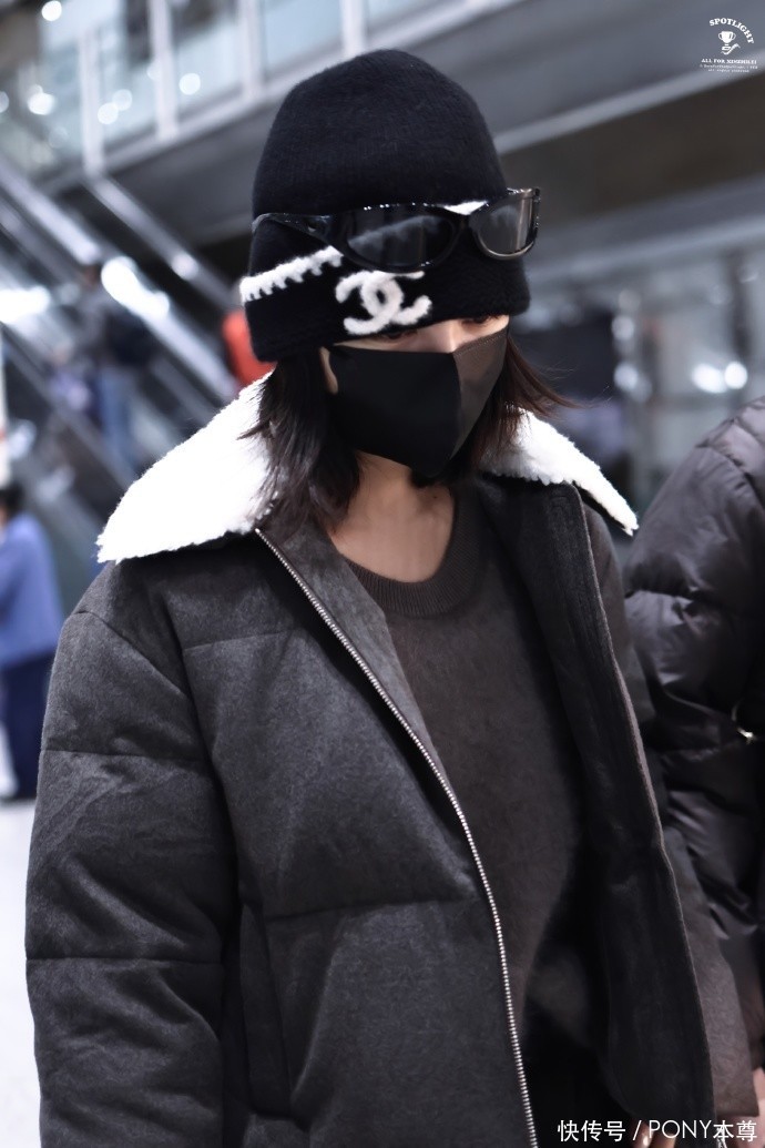 辛芷蕾选择的灰色短款毛领棉服,内搭V领设计的针织衫,下半身搭配高腰裤,和厚底鞋,保暖又显高,搭配针织帽,洋气高级!