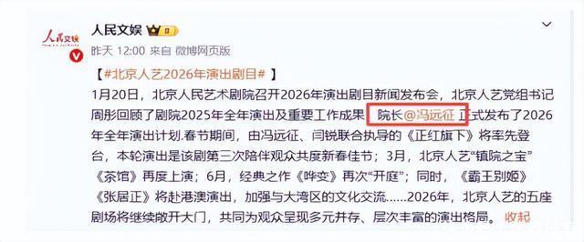?????? 很多人是从一个很阴影的角色认识冯远征的,这事绕不开,也躲不掉,安嘉和这三个字,像一张标签,贴上去之后,好多年都没撕下来。?????? 观众提起他,脑子里第一反应就是那张温文尔雅又突然失控的脸,甚至有人会下意识把情绪往演员本人身上套,这种事听着离谱,又真实发生过。?????? 冯远征自己对这事看得很清楚,他从来没否认这个角色带来的影响,也没抱怨过被误解,他更没试图洗白什么。?????? 他只是演完戏,转身就回到舞台,回到北京人艺那栋老楼里,排练厅不大,灯光不亮,地板被磨得发亮,演员一遍一遍走位,说词,停下,再来,没有镜头,没有滤镜,也没有热搜。?????? 最近有个细节被人翻出来,说不上多大动静,却挺耐看,央媒在报道北京人年演出计划的时候,提到冯远征,用的称呼很干脆。?????? 院长冯远征,没有前缀,没有补充说明,就是院长两个字,这种写法放在央媒里,很少是随手一写,往往意味着身份已经稳稳落在这个位置上,不需要再解释来路。?????? 这两个字看着简单,背后压着几十年的路,也压着一个演员慢慢走到管理者的位置,冯远征当院长已经三年多了。?????? 这个时间不短,只是他一直不爱把这个身份挂在嘴边,外界对他的印象还停留在演员阶段,直到这次称呼变化,才让不少人意识到,这个人已经在那个位置上站稳了。?????? 他的起点并不光鲜,甚至有点偏离轨道,年轻时候,他对演戏没什么概念,脑子里装的是另一条完全不同的路,跳伞,往天上冲,人从高空落下,风声灌满耳朵。?????? 这种画面在很多男孩心里都燃过,他是真的去练过,也是真的想进队伍,体检那一关没过,门一关,路就断了。?????? 后来进工厂,当工人,日子过得很标准,上班,下班,吃饭,睡觉,心里却一直空着,像是少了一块东西,不知道缺什么,也不知道去哪找。?????? 这种状态持续了一段时间,直到有一次去参加业余朗诵班,本来只是打发时间,站在人前开口说话的那一刻,声音在空气里扩散,周围的人安静下来,他自己反而被击中了。?????? 再后来,坐在北京人艺的剧场里,看话剧《绝对信号》,灯光亮起又落下,演员在台上走动,说词,情绪一层一层推出来。?????? 他坐在下面,突然很清楚地知道,自己要的就是这个地方,不是掌声,也不是名气,是站在那块舞台上的感觉。?????? 决定做演员之后,他走的路一点都不顺,1984年去考北电,没考上,那时候流行的审美他都不占,脸型普通,气质偏瘦,镜头缘不明显,落榜在预料之中,中国煤矿文工团那边的机会也错过了,两头都空,人一下子被卡住。?????? 拍《青春祭》算是一个小窗口,被导演选中,进了剧组,刚觉得事情有点起色,北京人艺招生的消息出来了,他从剧组请假,赶回北京,赶到的时候正好是初试最后一天,心里其实没底,只知道不能再错过。?????? 那次考试,他状态很稳,没有花架子,也没有多余动作,台词、肢体、眼神,全都摆在那儿,1985年,录取通知书下来,北京人艺学员班,他自己后来提起那一刻,用的是一个词,踏实。?????? 进了人艺,没人惯着他,这个地方向来如此,老一辈艺术家在那儿,台词错一个字都会被盯出来。?????? 1986年,他第一次正式登上人艺舞台,在《天下第一楼》里演钱师爷,角色不大,他演得很用力,每个细节都反复琢磨。?????? 话剧一部一部来,他走得慢,却很稳,2005年,凭《全家福》拿到梅花奖,领奖那天晚上演出结束,才接到父亲病危的消息,他把戏演完,才离开,这种选择在外人看来很残酷,对他来说很清楚,台上还有观众。?????? 影视剧让更多人认识他,《不要和陌生人说话》播出之后,安嘉和成了很多人的心理阴影,骂声、抵触情绪跟着来,有人把角色的恶直接扣到演员身上,他没有躲,也没有解释,戏演完了,角色留在作品里。?????? 他的戏路其实很宽,《天下无贼》里那个劫匪,戏份不多,却让人记住了,《钢铁年代》里的工人,又完全是另一种状态,演什么像什么,这种能力来自长期在舞台上磨出来的功底。?????? 2015年之后,他慢慢把重心往回收,话剧,剧院,人艺这块牌子,不是靠情怀撑着的,需要有人把日常事务一件一件接下来。?????? 2020年,副院长公示,2022年,院长任命下来,任鸣离世之后,这个位子空着,考察了两个多月,最终落在冯远征身上。?????? 演员出身的院长,在人艺历史上还是头一回,压力很实在,他上任之后没折腾花样,老戏复排,新戏推进,年轻演员往前顶,经典留住,创作不停,人艺该有的样子,一点一点拉回来。?????? 濮存昕早些年说过一句话,说在冯远征身上看到的是对艺术那股近乎执拗的追求,当时听着像朋友之间的评价,现在回头看,很准。?????? 央媒这次把称呼换成院长,其实只是把事实摆出来,冯远征走到今天,不靠一个角色,也不靠一阵风,是在舞台上,在幕后,一天一天走出来的。?????? 两个字,轻描淡写,却压着时间。?????? 冯远征为北京人艺原创新戏保年演出计划揭晓--中华网?????? 《雷雨》“罗朱”有新人冯远征:让年轻人尽早接班--中国新闻网