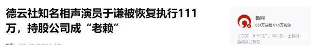 ?????? 2025月进入强制执行阶段,公司账户余额不万,法院直接冻结股东个人名下对应金额。?????? 于谦名下银行卡、股票、房产份额被限制高消费,列入失信被执行人名单。?????? 111万对他不是天文数字,但程序必须走完:要么公司还钱,要么个人垫资,要么申请分期。