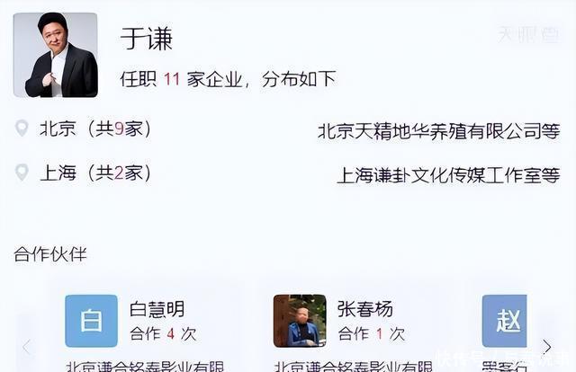 ?????? 除此以外副业版图越铺越大,北𱋁家、上家,业务跨影视、养殖、宠物乐园、食品。?????? 墨客行影年注册,注册资万,于谦实万%,主业拍网剧。?????? 2020年投一部古装网剧,预万,票房分成没回本。