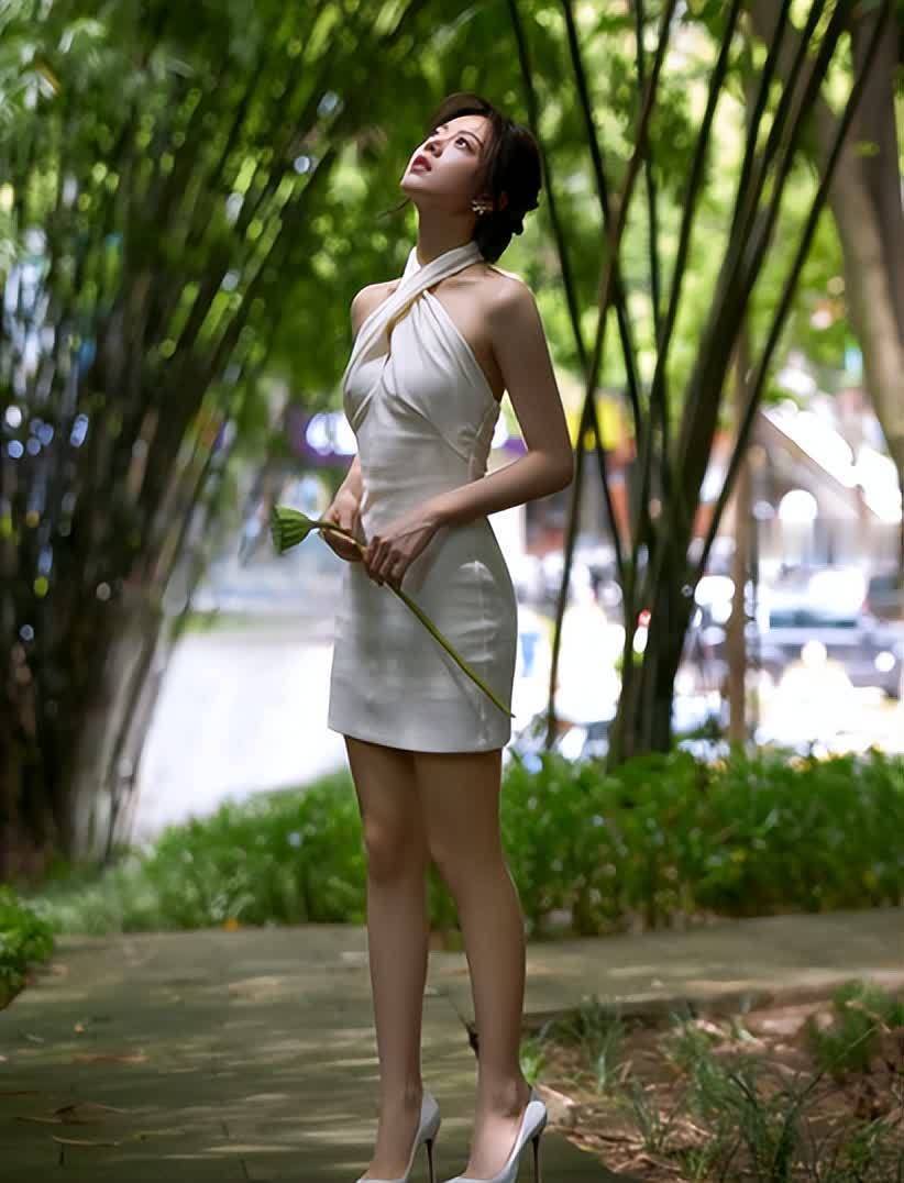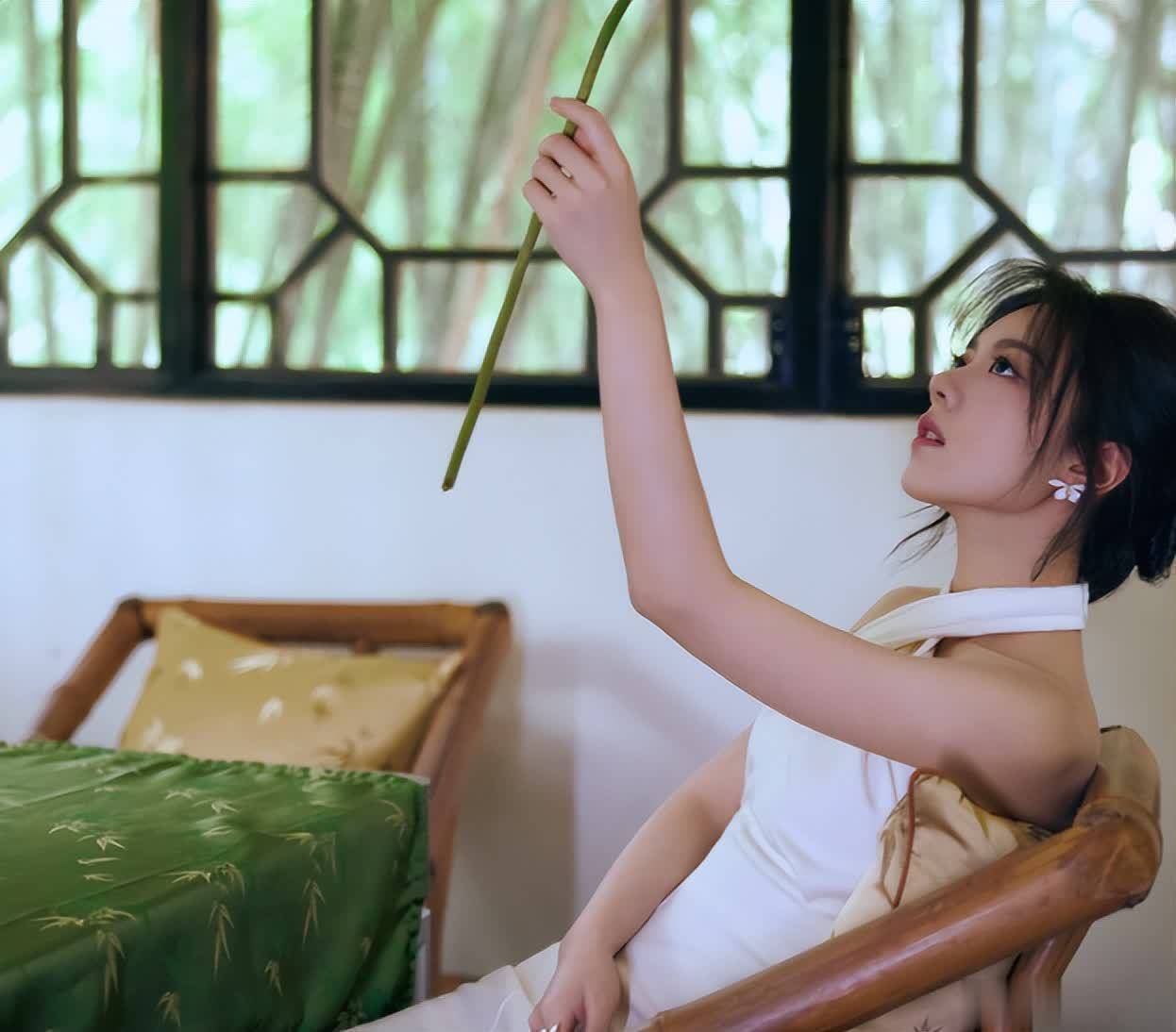 近日赵今麦亮温婉出镜了,大家觉得也是又美又飒,美出了新的高度,近日,赵今麦工作室发布一组写真照。赵今麦身穿白色挂脖短裙,大秀美背。竹林山间,手捧莲花或轻摇纸扇,气质清新,古色古香!