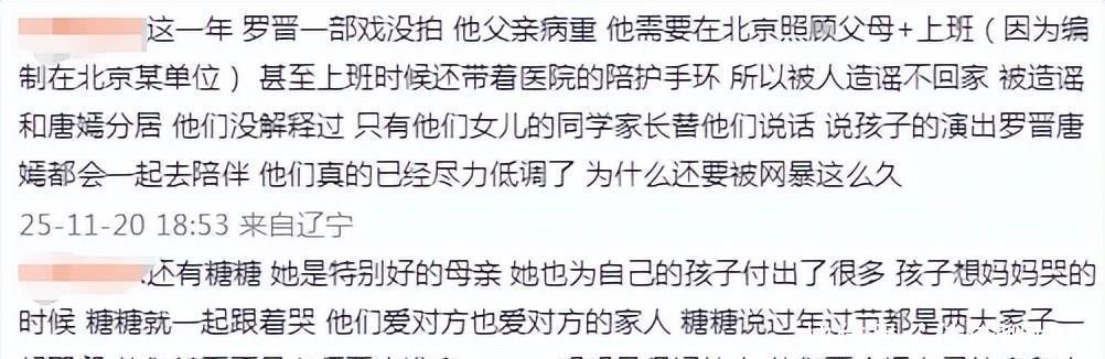 3日北京传来消息,罗晋父亲在首都离世享岁。其经纪日透露告别仪式选在八宝山,而不是江西老家,引发部分网友对家庭关系的讨论。罗晋父亲曾在江西某县任卫生局局长,据老乡介绍老先生平时很热心肠。选择北京而不是回乡办理后事的具体原因暂未说明,但有知情人士指出八宝山常用于市级以上干部告别仪式。唐嫣近日IP定位显示在上海,这让之前离婚传闻再次浮出水面。不过多个实锤信息被翻出:罗晋此前陪护父亲时戴过医院手环,拍戏受伤时也见他默默守护唐嫣。还有家长证实他们常接送女儿上学,最近迪士尼还被拍到全家一起玩耍。