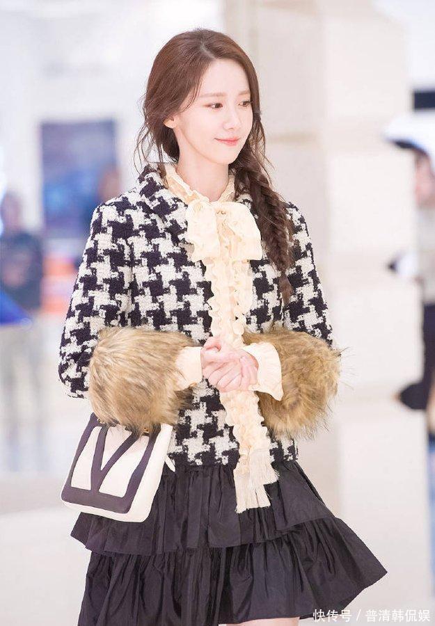 林允儿选的黑色压褶半裙太聪明了!粗花呢夹克有点硬挺,配个软乎乎的褶皱裙,刚柔并济的感觉一下子就出来了——既像职场里带点俏皮的白领,又像周末约会想穿得精致点的小女生,这种“不费力的优雅”是不是很多人想找的?
