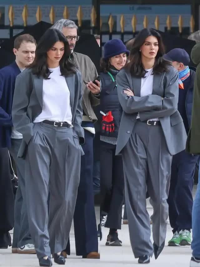 肯达尔·詹纳的西装裤穿搭更显气质,她的身材与体态那么好,同样不会选择过于鲜艳或是紧身的衣服裤子来穿搭,反而穿得比较中规中矩。