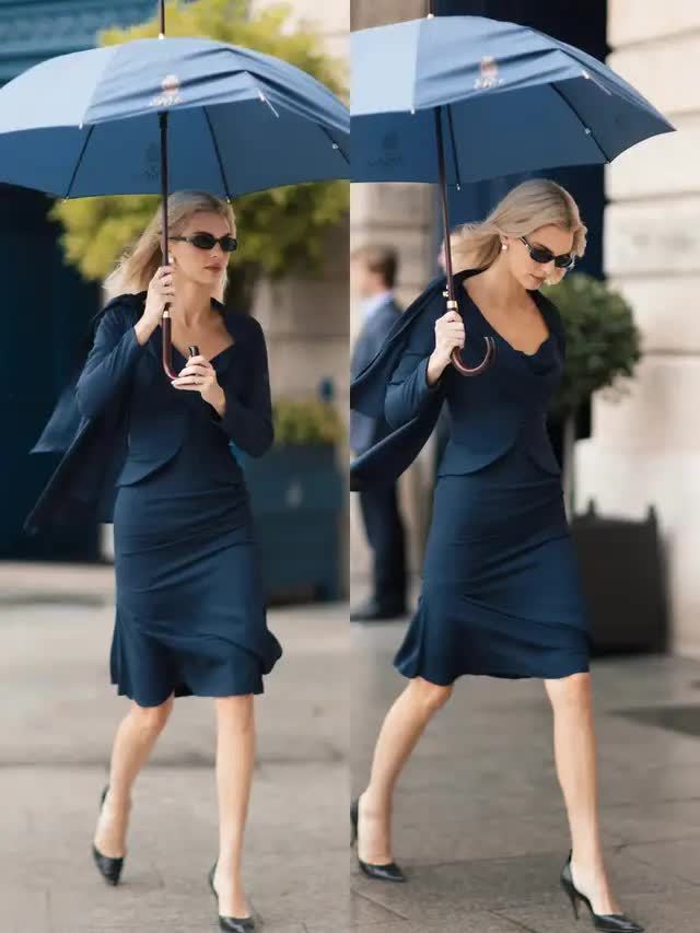 有气质的女人往往体态都很好,肩膀是打开的,后背挺得笔直,身穿一套西服裙装,脚踩黑色浅口高跟单鞋,结合大波浪的卷发造型,走起路来自带风,又飒又美。