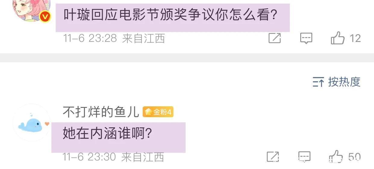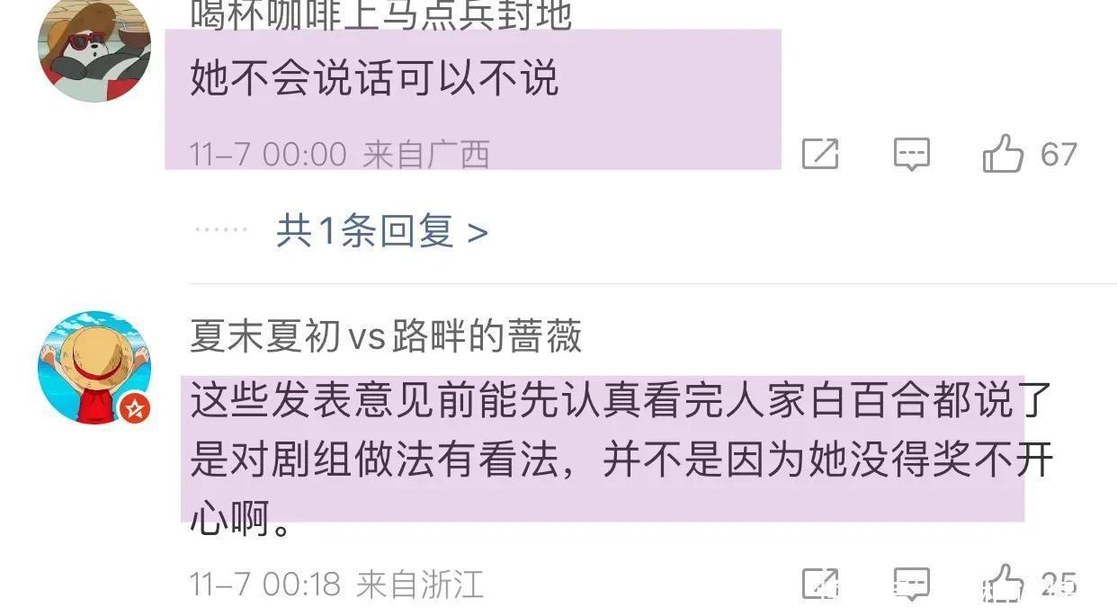 此话一出引发全网热议,网友说叶璇站着说话不腰疼,她是得奖那个,所以她自然说风凉话,这事应该问问古天乐当时的心情,而且白百合已经明确说明,没得奖,不重要,同组人得奖她也会跟大家开心庆祝,重要的是支开她,骗她说没有奖,孤立她,这跟叶璇说的,完全就是两回事!还有网友说她为了直播带货蹭热度!叶璇也演过不少作品,演技也可以,只是这几年走直播带货路线了!