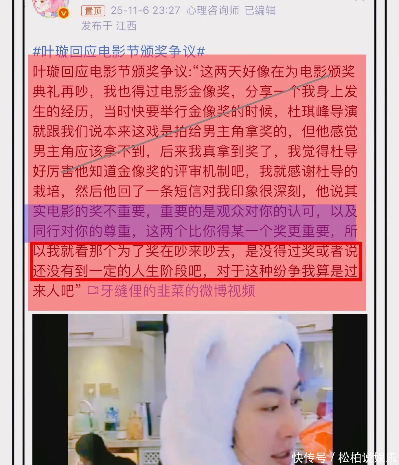 没想到叶璇的一番话翻车了,其实这件事只有当事人最有发言权,张律导演一直没回应,不知道有没有反转。拭目以待!
