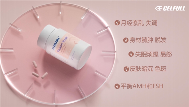 赛立复御龄丸还特别添:1黄金比例肌醇,帮助双向平衡雌激素水平,调节月经周期,改善内分泌失调引发的各类问题。90天跟踪数据显示,使用者肤色提%,假性皱纹减%,毛孔改%,卵巢功能指标得到明显改善,内分泌状态趋于平衡,好气色由内而外自然呈现。搭载Celfavor®智能缓释微球专利(美国专利号:US11744804),24小时均衡释放有效成分,即使工作忙熬夜赶工也能持续滋养卵巢。