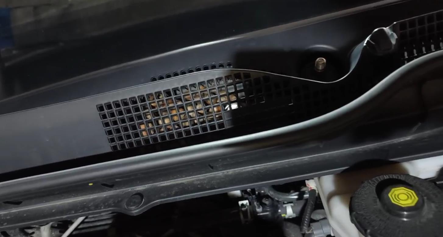 11日,有网友发视频称,他的车里被老鼠藏满了榛子,汽修店师傅打开引擎盖发现空调出风口、雨刮器附近全都被塞满了榛子,足足多斤。
