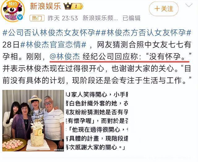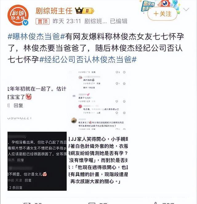 ?????? 很快“林俊杰恋爱”词条登上热搜,大众粉丝们都送上祝福,可没想到评论区会发生如此恶心一幕。?????? 在一堆祝福的话中,有些流言显得格外扎眼,他们仅凭一张照片,就直接断言,女方这个时候好像已经怀孕了。还有营销号跟风,直接说林俊杰马上就要升级当爸爸了。