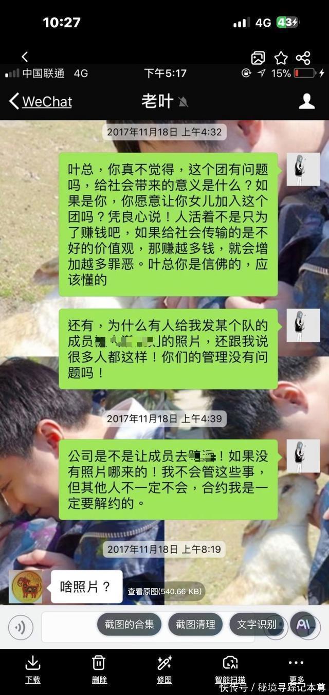 ?????? 丝芭此前仅否认“陪酒”指控,未回应其同步揭露的收入分配不公(如片万税后仅万)等问题,网友推测删除或因证据链薄弱。?????? 部分观点认为警方或要求撤下敏感信息,但丝芭及律所未公开说明原因。?????? 曾艳芬公布的聊天记录显示,公司曾安排成员参与“陪老板吃饭喝酒”的应酬场合,并提及“KTV陪酒”“见客户”等细节。她强调从未使用“陪酒”二字,实际表述为“陪老板吃饭喝酒”,指出该措辞差异关乎法律定性(日常应酬vs违法行为)