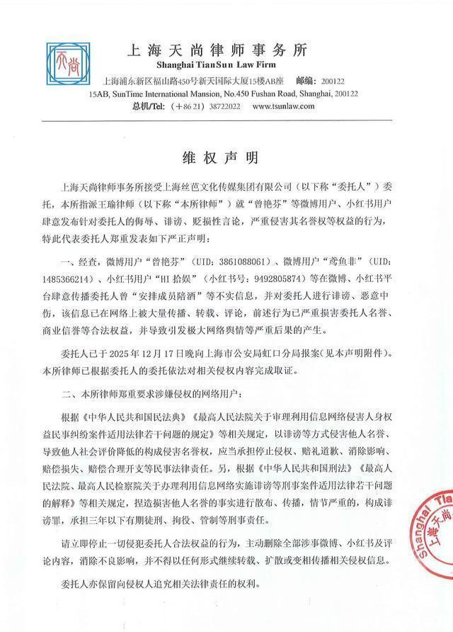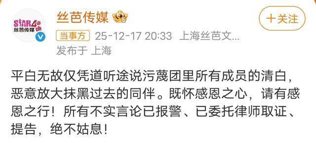 ?????? 丝芭在部分合作方诉讼中主动撤诉并承担费用(如起诉杂志社违约后撤诉),加剧公众对其“滥用诉讼阻挠艺人发展”的质疑。?????? 04?????? 律师指出,报警回执仅证明警方接警,不等于立案或事实认定。诽谤罪需综合考量信息传播范围、主观恶意及社会危害程度,无“点击次即定罪”的刚性标准。?????? 若陪酒指控属实,丝芭或违反《劳动法》及《未成年人保护法》(部分成员事发时未岁)。?????? 丝芭近十年涉及起艺人解约诉讼,被曝“收入抽成%”“自动续约岁”等条款,前成员沈梦瑶解约后自立工作室的案例已引发行业反思。