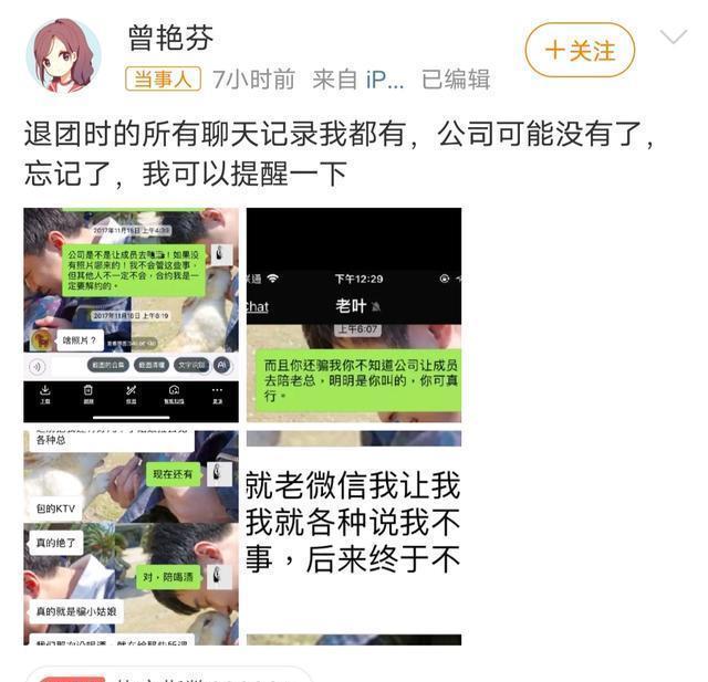 ?????? 02?????? 曾艳芬在对方回执发布后,曝年与高管“叶总”的聊天记录,直接回怼:退团的所有的聊天记录我都有,公司可能没有了,忘记了,我可以提醒一下。