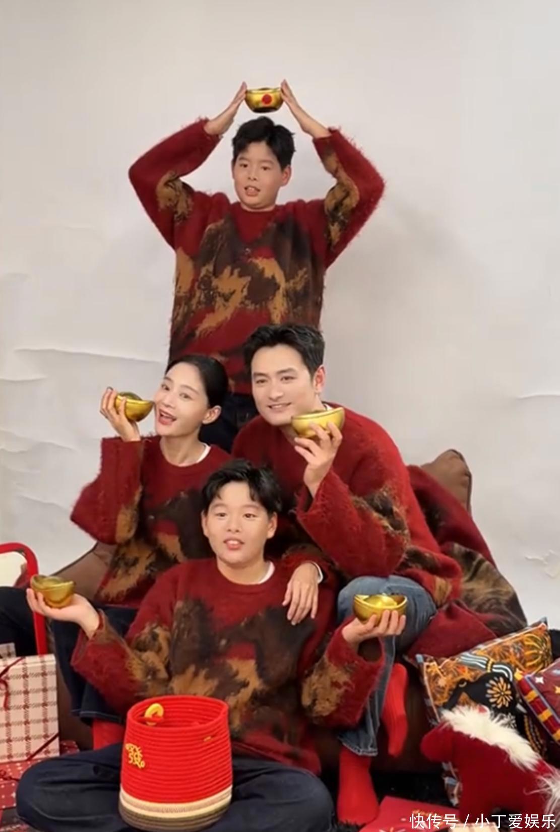 再过四周就快到春节了,1日,演员王媛可在自己的社交账号上晒出一家四口穿着新年服装拍的全家福。令人挺意外的是,早已少在老婆王媛可的视频里出现、甚至还被传婚变的王雨,这次终于在镜头前露面了。