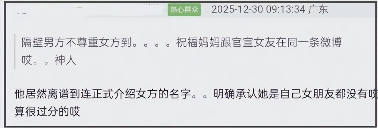 然而正是这张看似甜蜜的合照,意外点燃了网友的质疑声浪。官宣方式,令人困惑关于林俊杰此次公开感情的方式,许多网友表示难以认同。有忠实粉丝指出,他在为母亲庆生的动态中,开头并非聚焦亲情,而是大段抒发爱情体悟;若说是正式官宣,却连女方的基本信息都未提及。