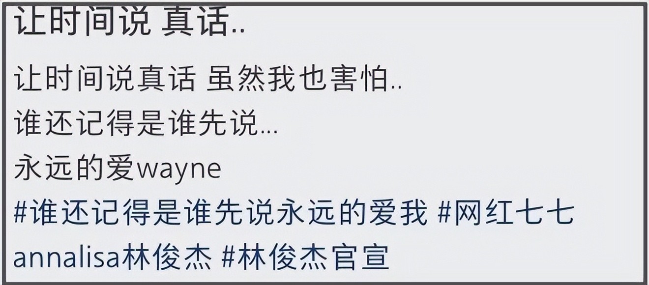 敏锐的粉丝立刻联想到林俊杰经典歌曲《记得》中的歌词“让时间说真话”,认为这是变相示爱。