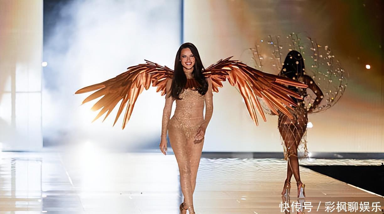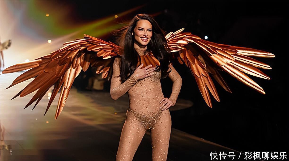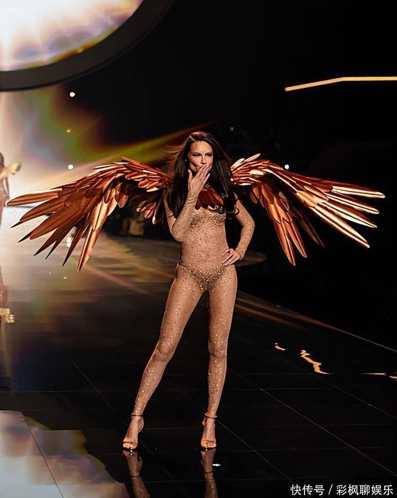 笑容依旧那么灿烂,台步依然稳如泰山,这才是真正的范例。第二套翅膀的造型,更加考验身材,半透明的皮肤衣,点缀着钻石,配上金色的翅膀,44岁的大利马简直像回到了二十多岁的模样。