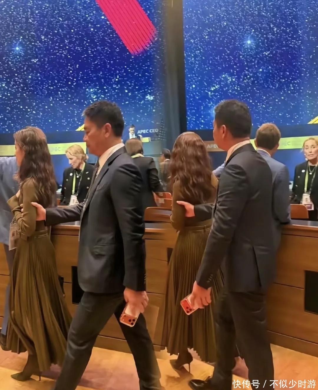 随后流出的新照片展现了另一番景象:他们出场时气场全开,刘强东手握咖啡杯,章泽天身披长款大衣,步伐从容,宛如电影大片中的豪门夫妇镜头。更温馨的是入场时刻,章泽天走在前方,刘强东主动伸手挽住她的手臂,动作自然流露亲密,无声诠释了感情稳定如初。