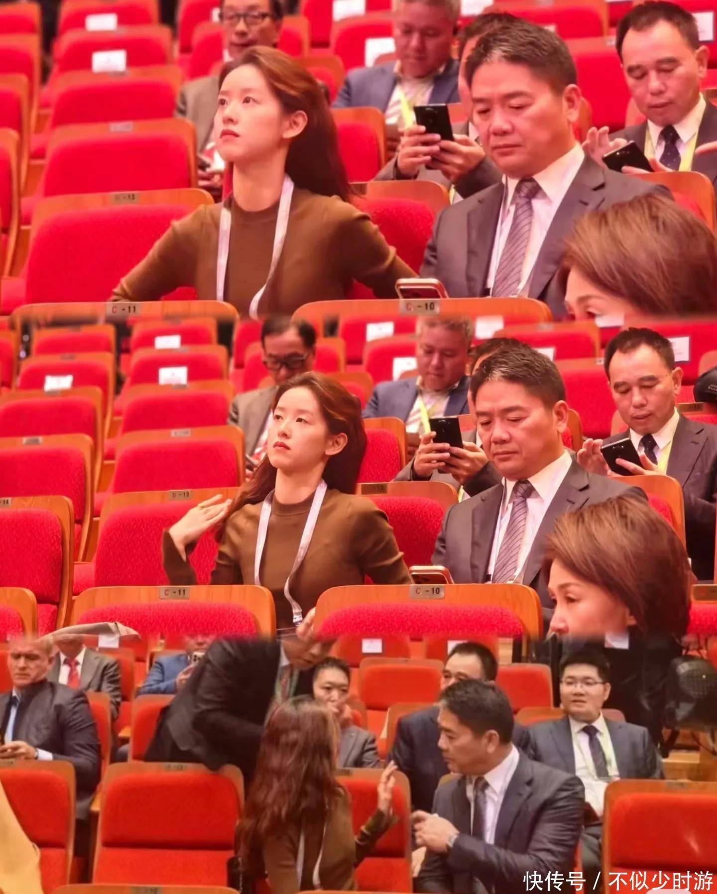 最初被拍到的画面中,夫妻二人正低头查看活动流程,神情专注认真。章泽天一如既往地展现出超越普通女星的高级感,镜头无论远近都能精准捕捉她的优雅轮廓,随手一帧都像杂志封面。反观刘强东,则显得略显疲惫,眉宇间带着倦意,发丝夹杂白霜,面部线条也更为深邃,岁月痕迹清晰可见,两人之间的年龄差距在视觉上更加明显。