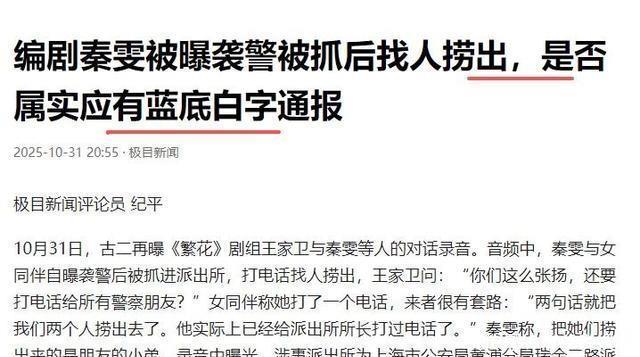 娱乐圈又爆出大新闻,这次不是八卦,是直接惊动了官媒!顶流女星秦雯,就是那个演过好几部热播剧、形象一直很正面的演员,这回竟然因为“袭警”被立案调查了。消息一出,瞬间刷屏。和以往最大的不同是,这次是官媒亲自下场点名,意味着事情的性质已经变了,再也不是粉丝控评、资本运作能轻易摆平的了。