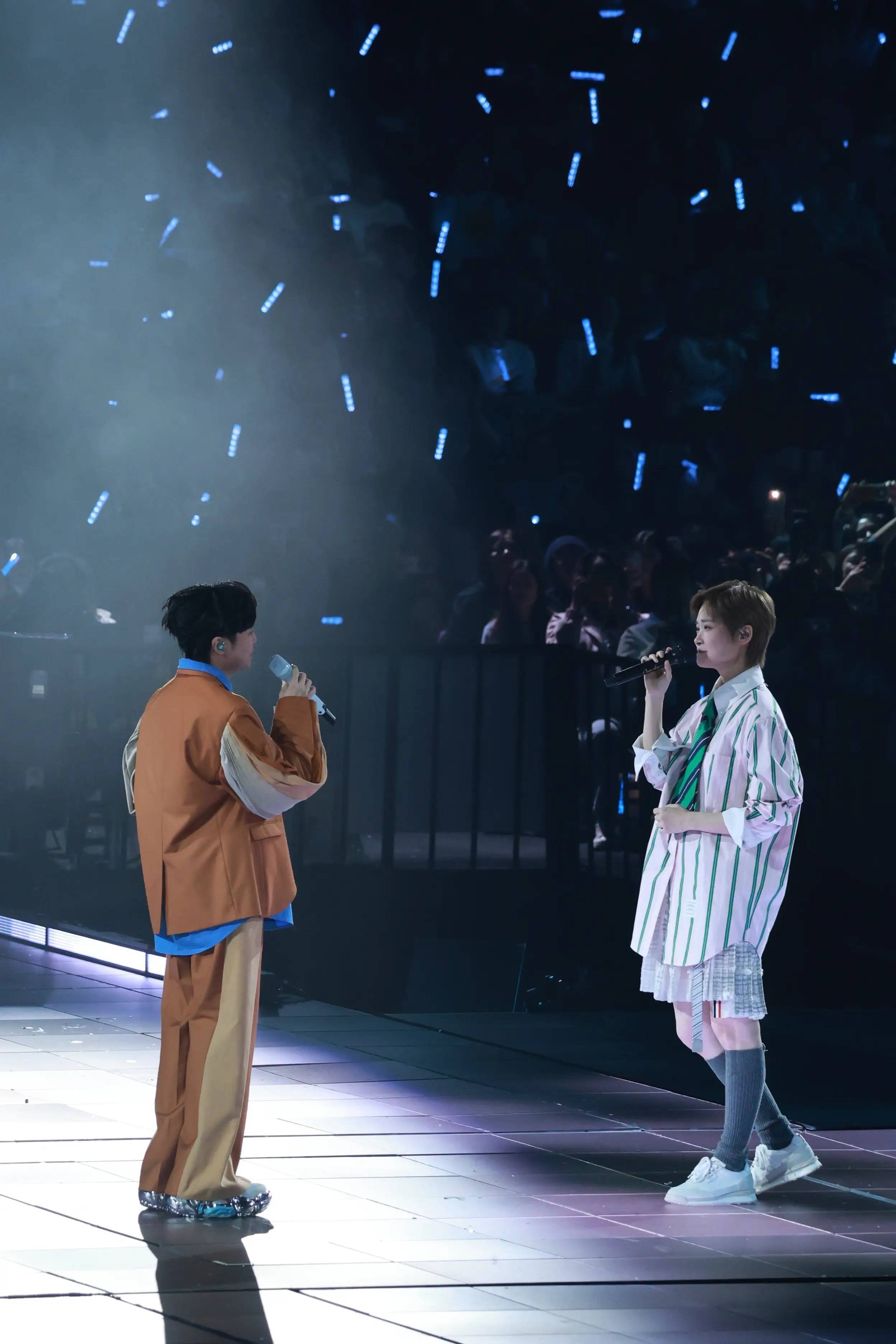 当天,吴青峰再度作为嘉宾登上李宇春演唱会的舞台,在talk环节,李宇春自曝昨天演唱会结束后自己深夜发疯,刷自己和吴青峰合唱的各种角度的视频,还打趣问他:“我太花痴吗?”吴青峰也是走心表示,自己为李宇春演唱会献出很多“第一次”,首度为演唱会写歌。现场,两人饱含深情合唱尚未发表的新歌《春雨里》,抓耳好听。李宇春感谢吴青峰诚意满满的作品,透露《春雨里》歌名倒着念是“李宇春”,吴青峰爆料有把自己的名字“藏”进这首歌的副歌,两人的神仙友情很好嗑。