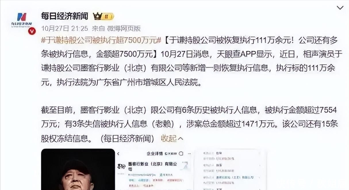 与于谦相关的影视公司新增恢复执行记录。