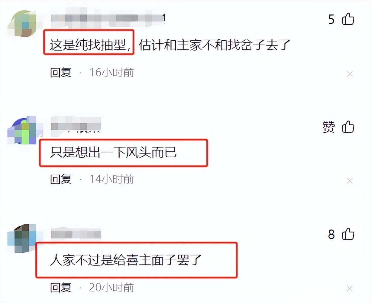 可惜网友并未给予掌声,反而一致指责其哗众取宠、不懂分寸,直言这种“显眼包”行为根本不该出现在人生重要时刻的喜宴上。