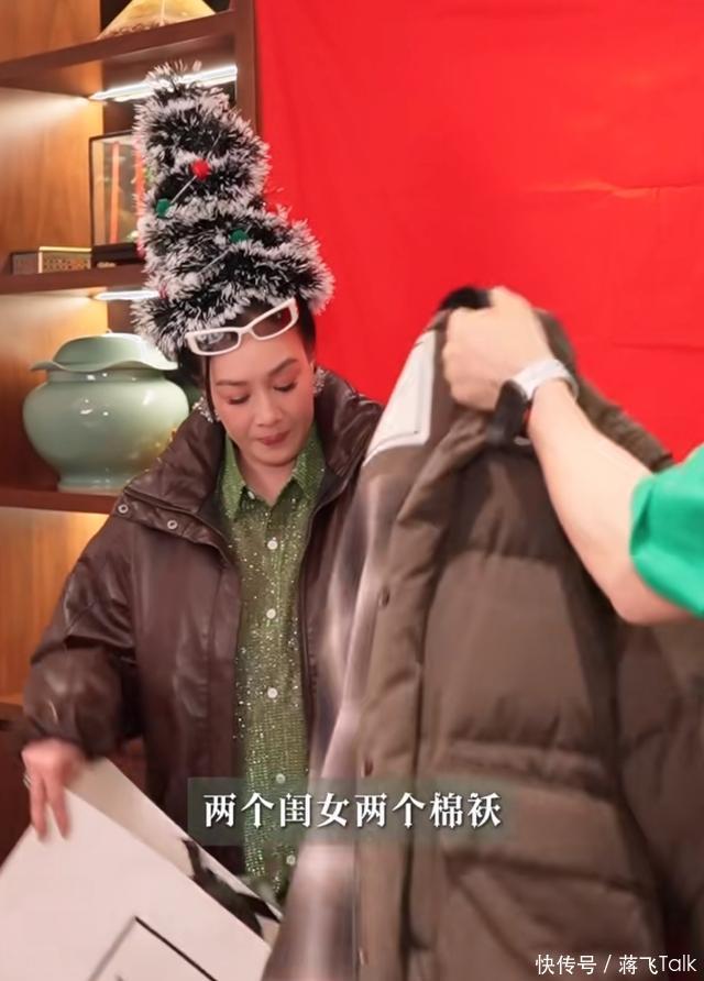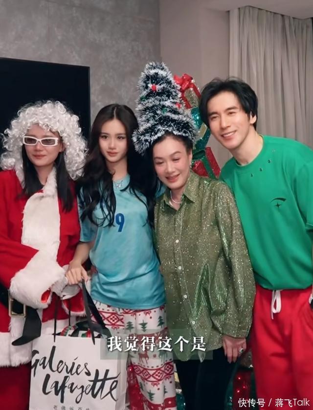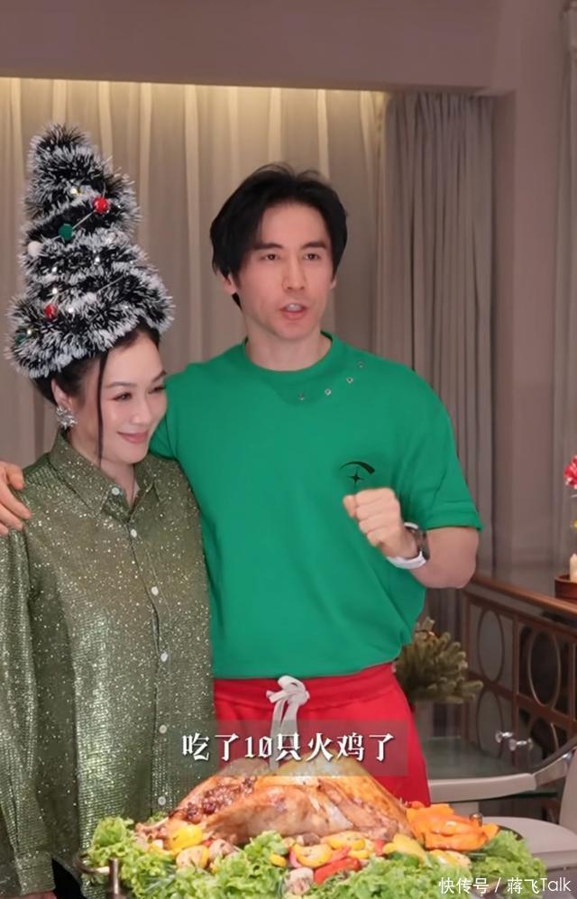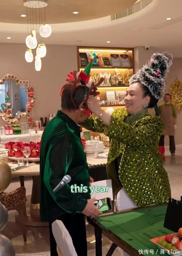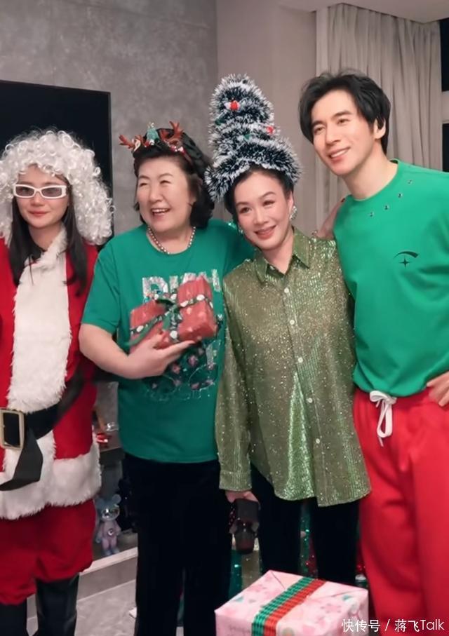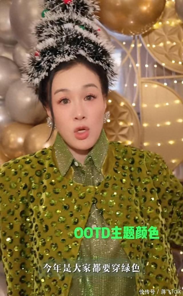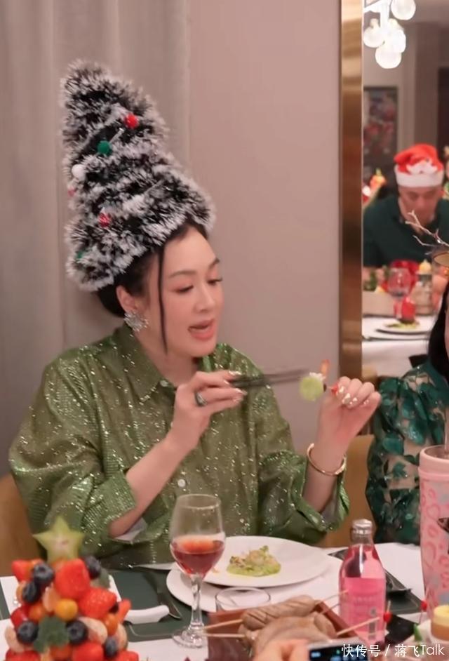 ?????? 钟丽缇每年都会订一个主题颜色,出席的家人都要穿主题色的衣服,今年定了绿色为主题色,钟丽缇又是穿着绿色外套上衣,又是穿着绿色袜子,头顶还弄了一个绿色圣诞树发型,造型着实夸张,但也非常有趣,家里有一个这样会调动氛围的人确实会开心很多。