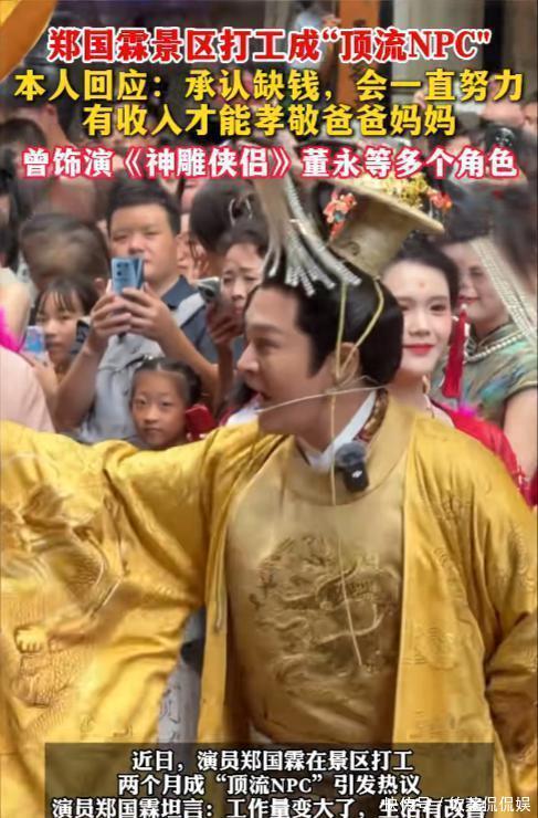 最近有网友发现,在上海某景区的舞台上,出现了一个很熟悉的身影。演员郑国霖穿着龙袍,和游客们一起泼水嬉戏,而且还在那里蹦蹦跳跳,玩得十分开心。一开始大家都很好奇,这难道是什么综艺活动吗?后来大家才知道,从今年夏天开始,郑国霖就成为了该景区的NPC,受到了当地游客的欢迎。