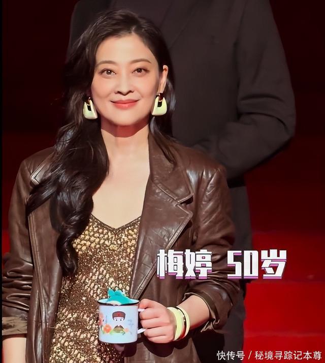 ?????? 首先还得是老选手——梅婷。?????? 穿着咖色皮衣、大耳环就上阵了。?????? 在往下一看,赶忙把眼睛给捂住,这是不是也过于大胆了些?