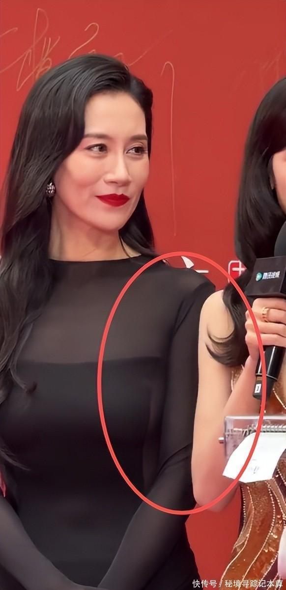?????? 这跟脸肿馒化、笑起来苹果肌肿胀的梅婷,简直判若两人。?????? 就是没想到一把年纪的梅婷也敢“真空上阵”。
