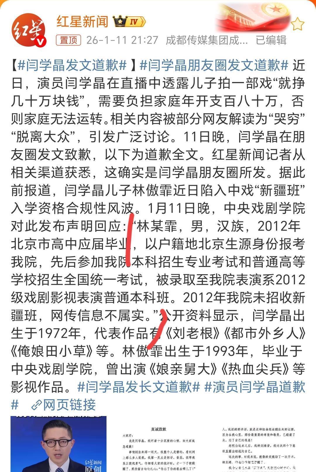 这更像是自救。网友吐槽:为了继续赚酸黄瓜的钱,不得不道歉。原先儿子林某飞被指报考新疆班,结果也是乌龙一场。原本网友质疑他北京户口,为何能去新疆艺术班?