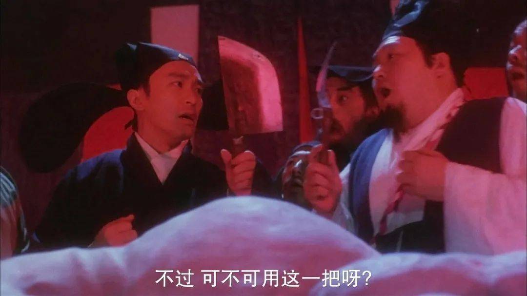 零零发又失惊无神的抽出这把菜刀,明显就是家里切菜的那把。最后,由导演谷德昭饰演的某大夫,一刀剁在天外飞仙(皇帝)手上。