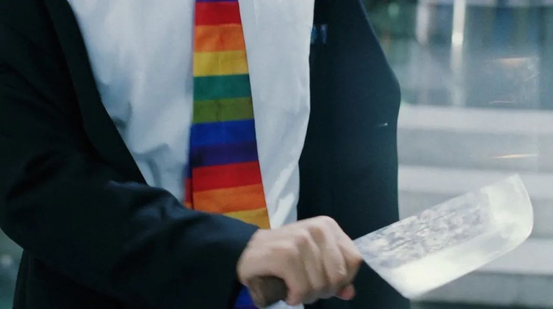 虽然这把神器,现在的身份,以及一身西装领带的装扮并不相衬,但这种不相衬的反差萌,正是周星驰无厘头喜剧的精髓。