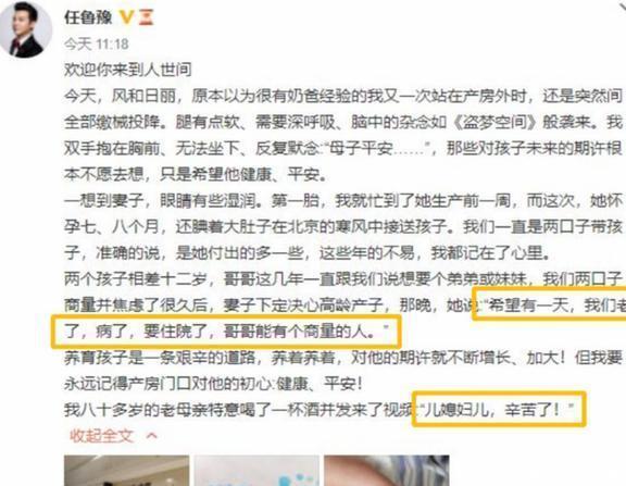 为了不让大儿子一个人孤单,也想着以后家里有啥大事小情的,俩孩子能互相有个照应。2022年,任鲁豫和朱晶一合计,决定再要个二胎。就这样,已岁的任鲁豫,又升级成了两个孩子的爸爸,家里更热闹了。