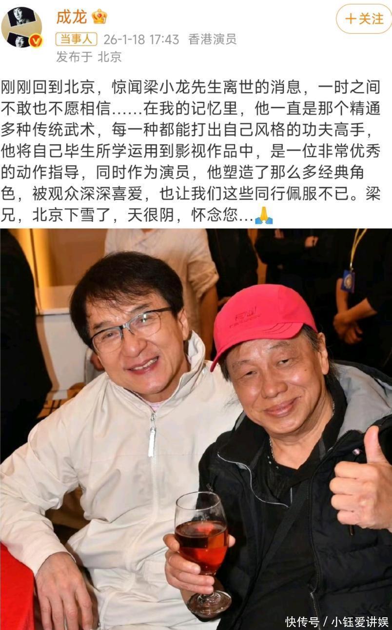 成龙的微博又多了一位悼念的老友,香港四小龙只剩下两龙。